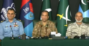 Addressing a critical press conference alongside senior officers of the Pakistan Navy and Air Force, DG ISPR revealed that India targeted civilian areas in Azad Kashmir using heavy weaponry and violated Pakistani airspace through drone incursions. The cross-border aggression on May 6 and 7 resulted in the martyrdom of innocent civilians, including women and children.